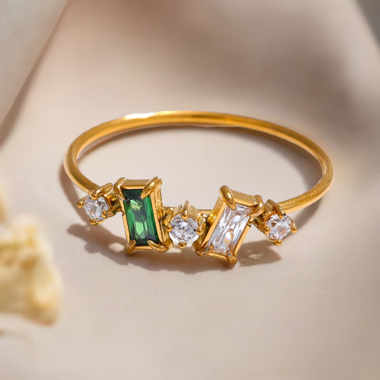 Anel Dourado com Zircônia Cúbica e Corrente Dupla