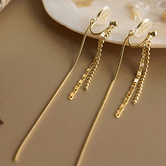 Brincos Longos Vintage de Aço Inoxidável Elegantes