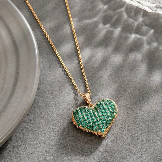 Colar de Ouro 24k com Pingente de Coração Verde Elegante