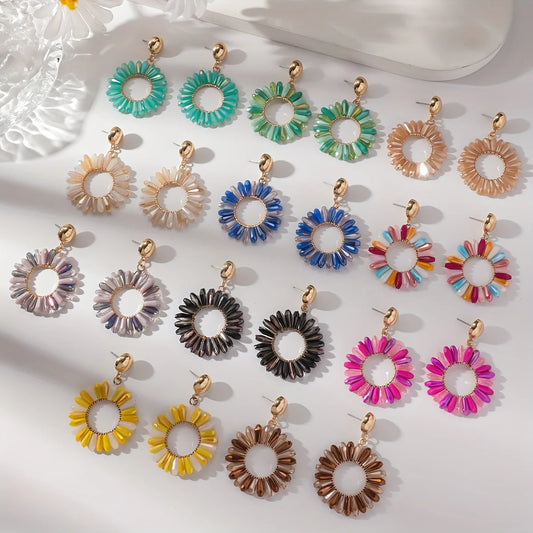 Brincos Boêmios com Flor Oca e Strass Multicoloridos