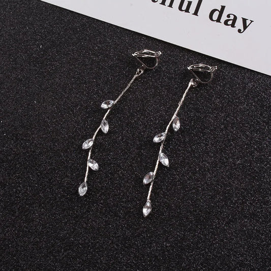 Brincos Clip On com Cristais Longos - Charme e Elegância
