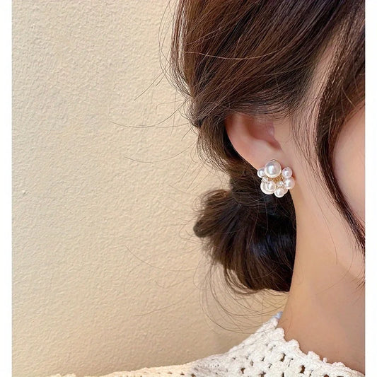 Brincos Elegantes de Pérola e Cristal - Estilo Coreano