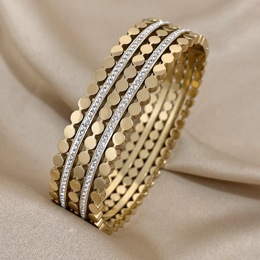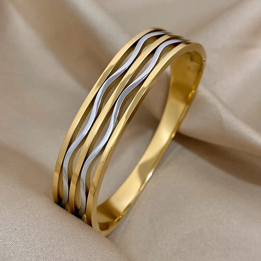 Pulseira Larga Geométrica Banhada a Ouro para Mulheres