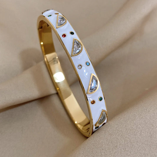 Pulseira de Aço Inoxidável com Zircão e Esmalte